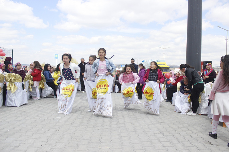 Durak Grup Ailesi olarak 23 Nisan Ulusal Egemenlik ve Çocuk Bayramı Kapsamında Çocuk Şenliği Düzenledik. Çalışanlarımız ve çocukları ile 23 Nisan Ulusal Egemenlik ve Çocuk Bayramı kapsamında düzenlenmiş olduğumuz “Çocuk Şenliği”nde aileler ile bir araya geldik. Çocukların eğlenceli bir gün geçirmesi için hazırlamış olduğumuz şenliğimizde Niğde Belediye Başkanı Emrah Özdemir eşi Duygu Özdemir ile birlikte katılım gerçekleştirdi. Niğde’de ilk defa gerçekleştirdiğimiz şenliğimizde çocuklar anneleri ve babalarının çalıştığı fabrikada ağırlandı. Şenlik etkinliği kapsamında öncelikle çocuklar için çeşitli oyunlar düzenlendik. Bu dönemde unutulmaya yüz tutmuş oyunlarımız arasında çuval yarışında çok eğlenceli sahneler yaşandı. Yumurta taşıma, sandalye kapmaca gibi oyunlarla çocukların hatıralarında tatlı bir anı bırakmayı amaçladık. Ardından çocuklara fabrika içi gezdirilerek anne ve babalarının çalışma ortamını tanıttık. Durak Grup yönetim kurulu başkanımız Hüseyin Durak düzenlenen etkinliğin firma ile çalışanın bağının güçlendirildiği bu mutlu günde çocukların yüzünün gülmesinin her şeyden önemli olduğunu ve Durak Grup Ailesi olarak düzenlenen organizasyonun geleneksel hale getirilmesini istediklerini belirtti.